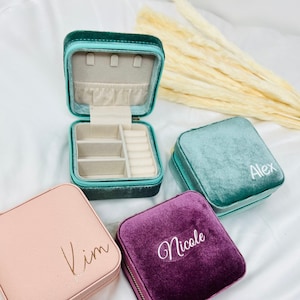 Kathy creations Jewelry box organizer travel accessories perfectly combine functionality with style, keeping your jewelry collection protected and neatly organized no matter where the day takes you! Featuring various multipurpose slots that easily accommodate rings, necklaces or earrings, with a superb velvet exterior and your name or initials carefully engraved, these jewelry boxes for women will come in handy for business travels, vacation, or at home!