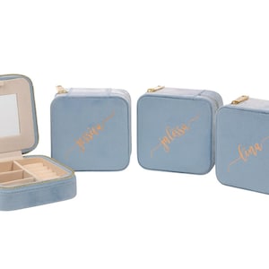 Kathy creations Jewelry box organizer travel accessories perfectly combine functionality with style, keeping your jewelry collection protected and neatly organized no matter where the day takes you! Featuring various multipurpose slots that easily accommodate rings, necklaces or earrings, with a superb velvet exterior and your name or initials carefully engraved, these jewelry boxes for women will come in handy for business travels, vacation, or at home!