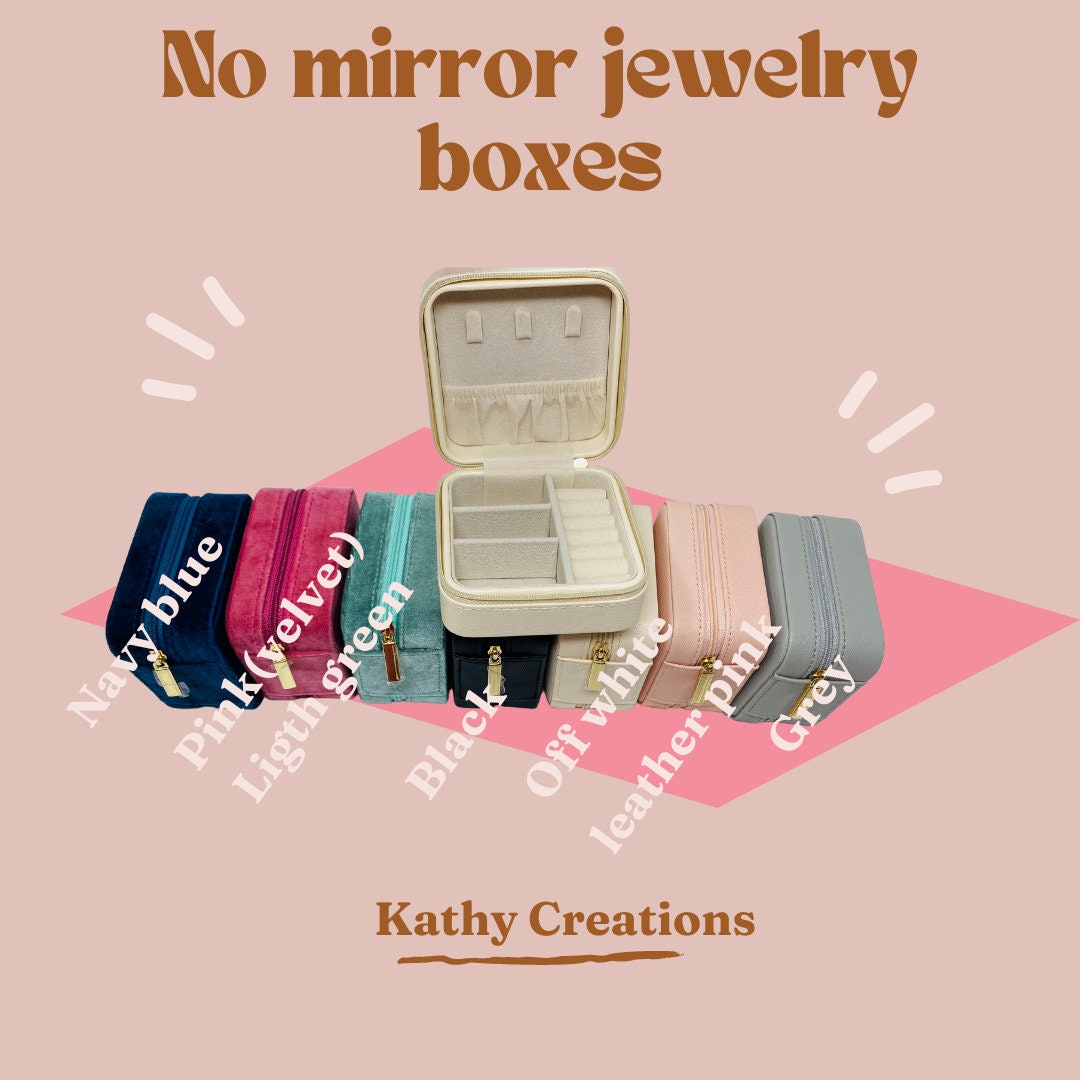 Box Includes 1 travel jewelry box personalized with name or initials , 1 robe you can choose from 10 colors , 1 rose flower for decoration, 1 scrunchies whit personalized holder