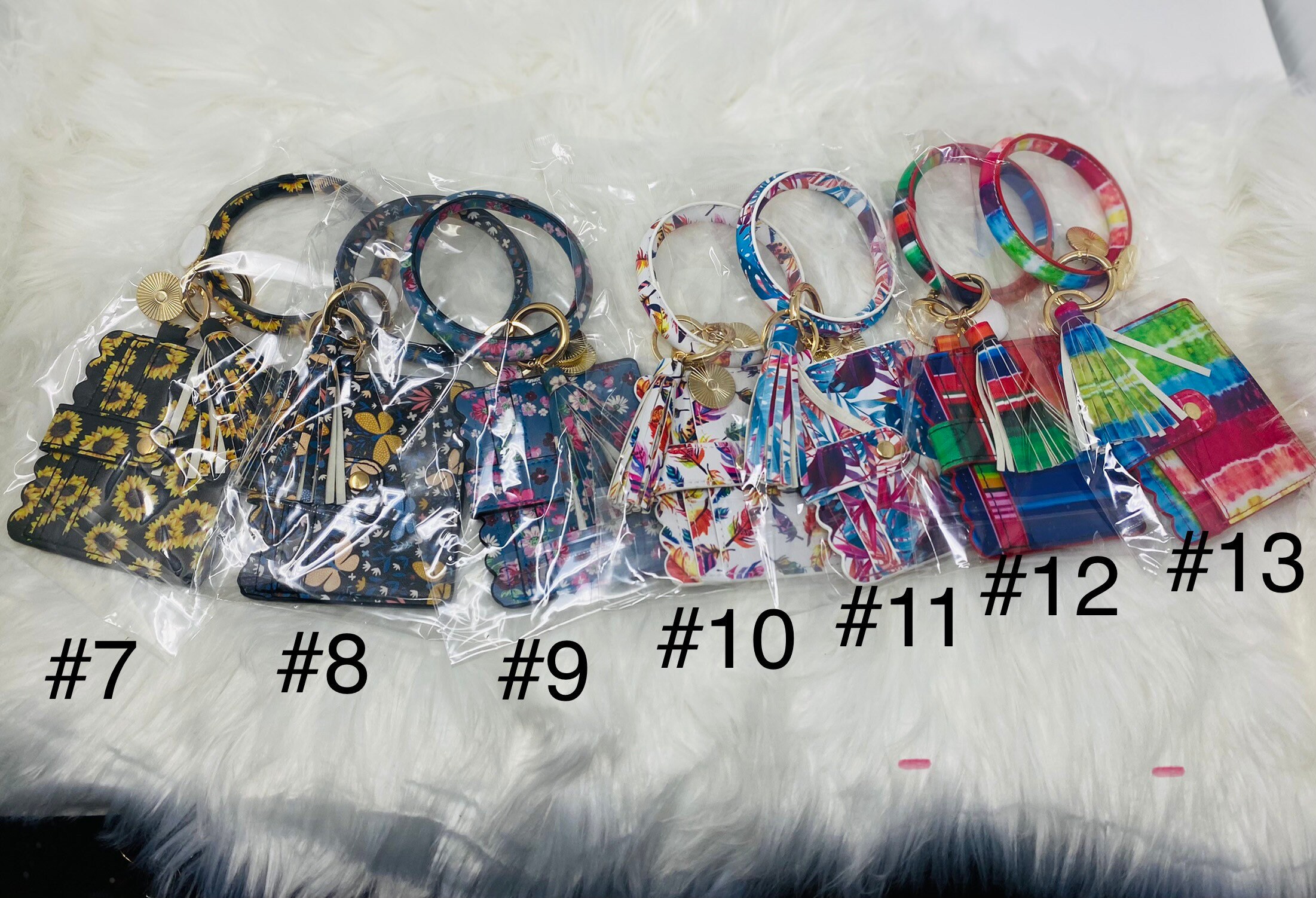 π» PU (faux) leather key ring measures about 13" around π» tassel measures about 3". π» ID holder measures approx 4" x 4.5". π»Initials or names initials for personalization it is required. If you preferred blank select no white charm at check out options.