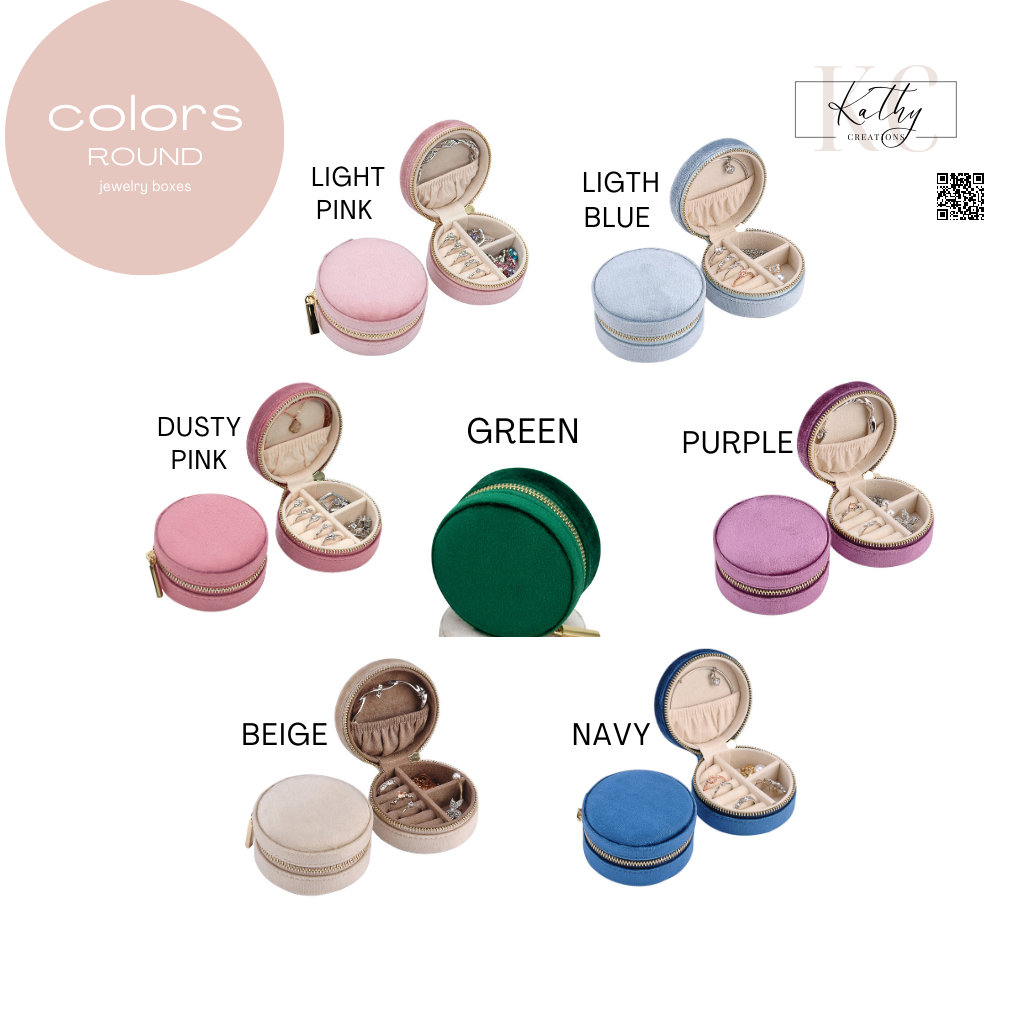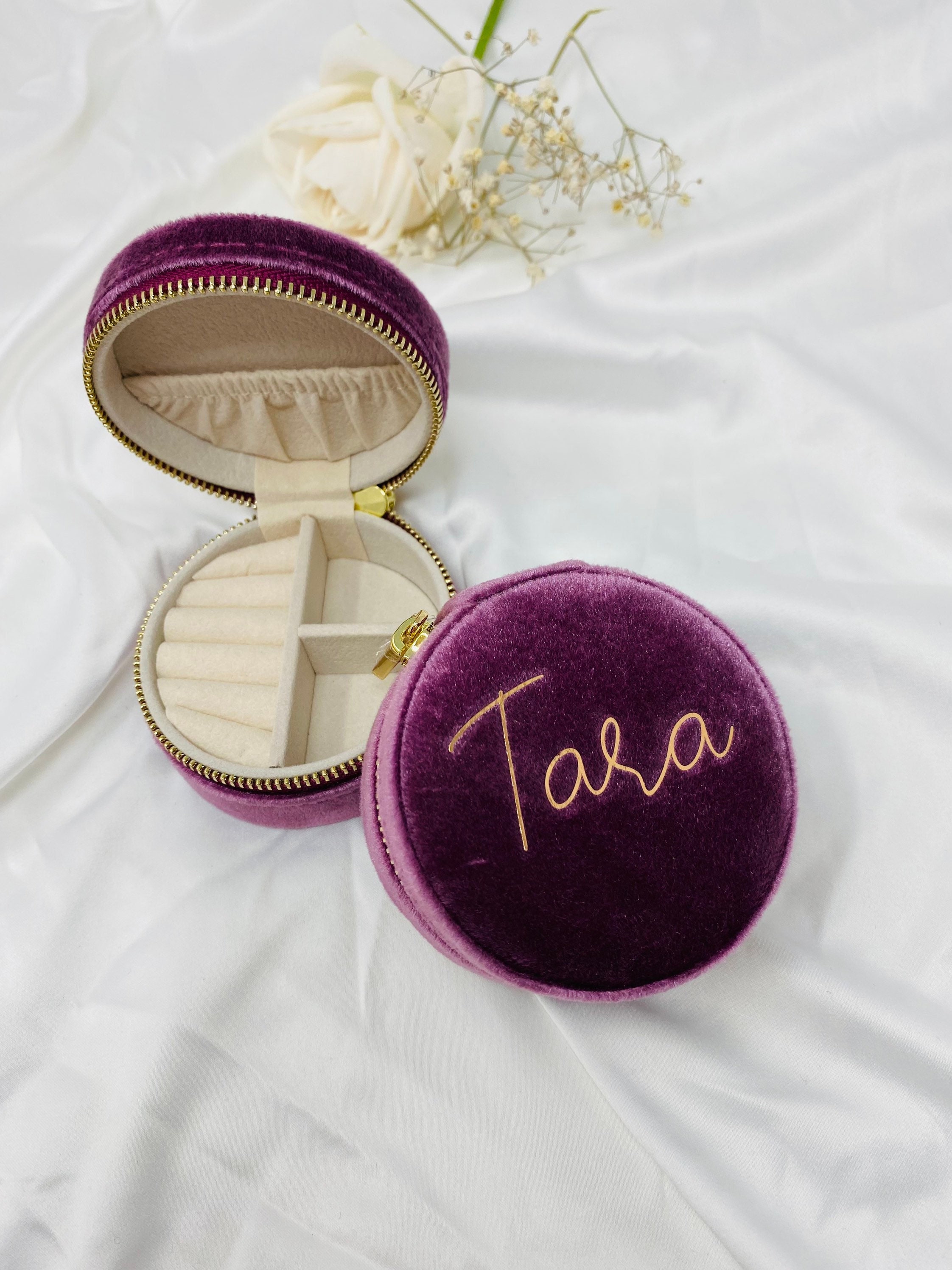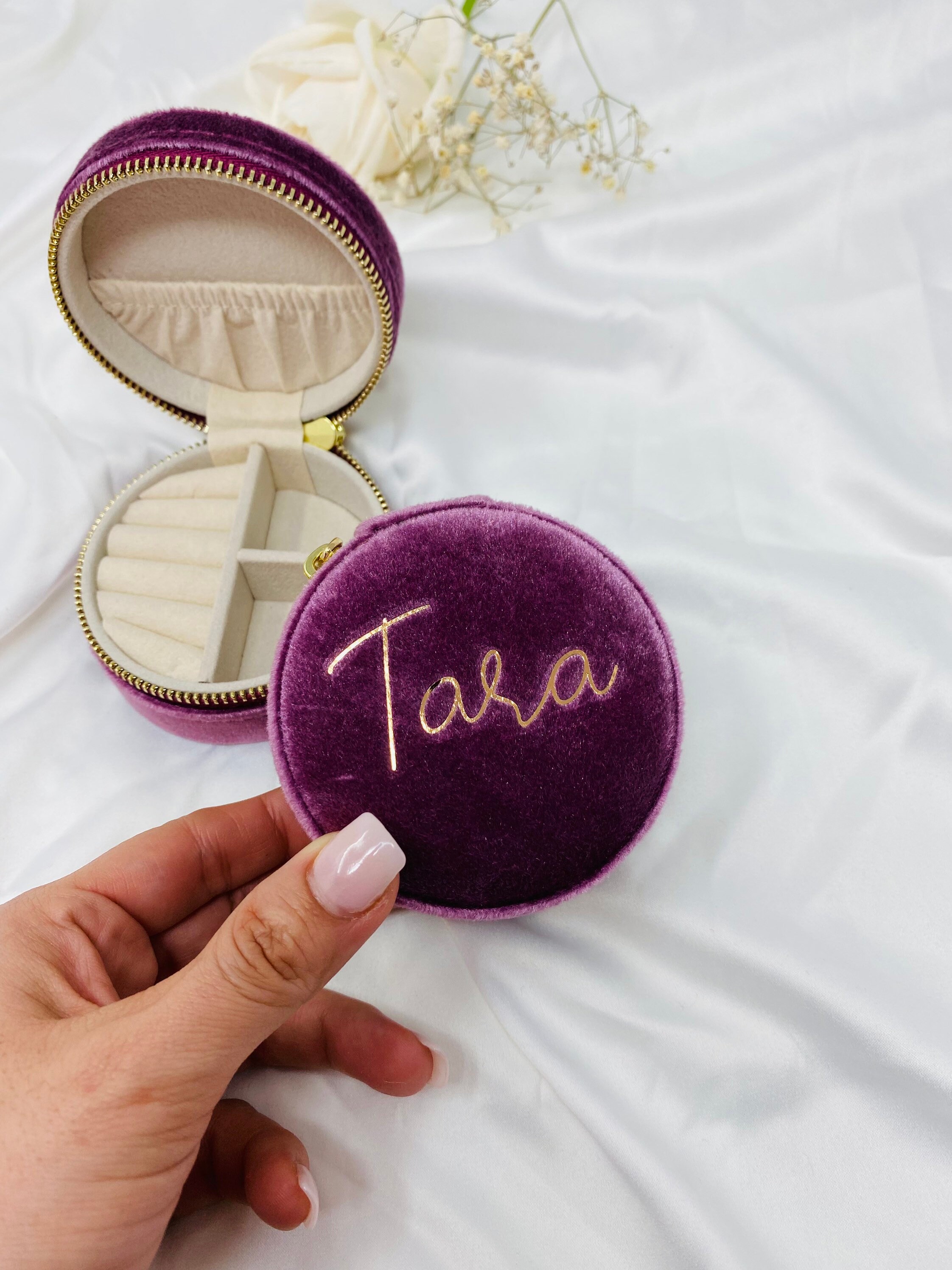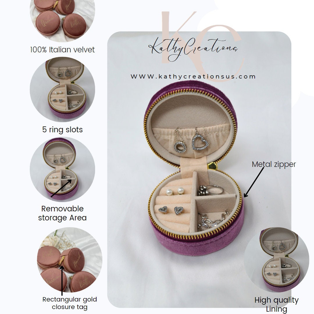 Round Zippered Travel Jewelry Velvet Case Personalized, perfect for Wedding Gift, Birthday Gift, Maid of Honor Gift, Bridesmaid Gift, Mother's Day Gift, Gift for Her, Mom, Bridesmaids and Friends for any Special Occasions.