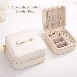 Kathy creations Jewelry box organizer travel accessories perfectly combine functionality with style, keeping your jewelry collection protected and neatly organized no matter where the day takes you! Featuring various multipurpose slots that easily accommodate rings, necklaces or earrings, with a superb velvet exterior and your name or initials carefully engraved, these jewelry boxes for women will come in handy for business travels, vacation, or at home!