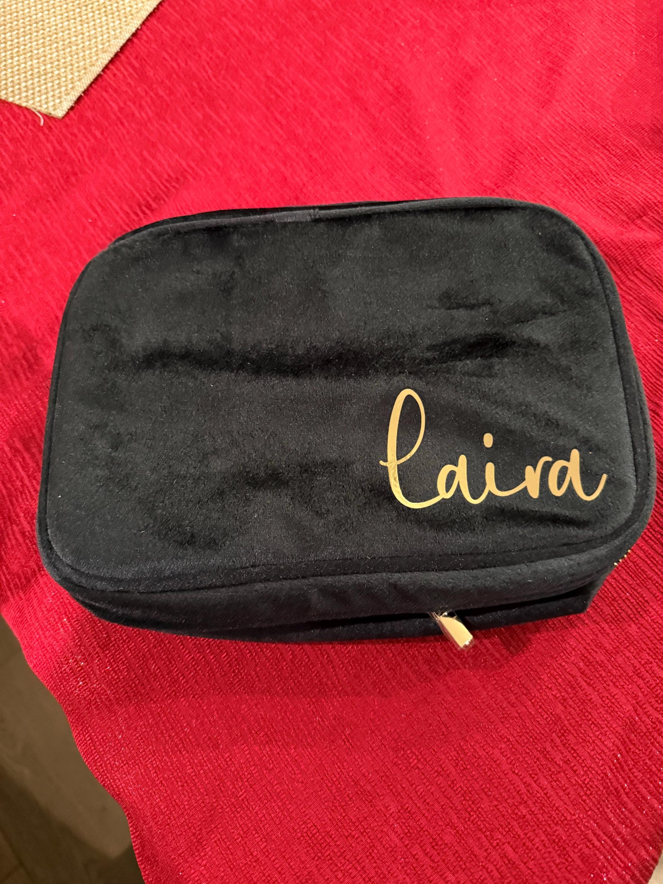 This made such a great gift for my friends at Christmas. I got these personalized velvet cases and put some makeup items inside. They were a hit. And they really are quite beautiful. I got green, navy, black, purple. I think the black and green with the gold writing look the best. Really beautiful. And great customer service too!! Thank you!