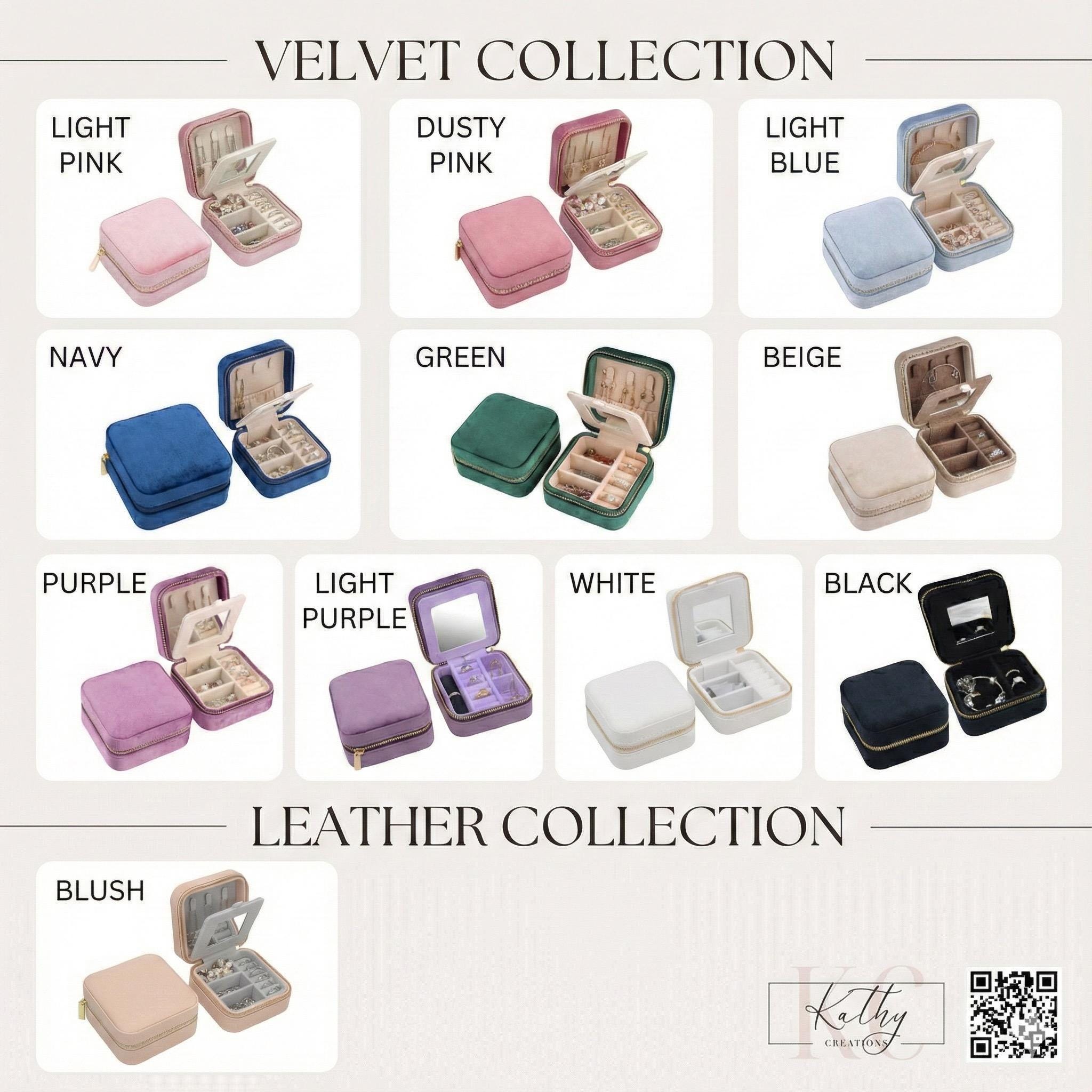Kathy creations Jewelry box organizer travel accessories perfectly combine functionality with style, keeping your jewelry collection protected and neatly organized no matter where the day takes you! Featuring various multipurpose slots that easily accommodate rings, necklaces or earrings, with a superb velvet exterior and your name or initials carefully engraved, these jewelry boxes for women will come in handy for business travels, vacation, or at home!