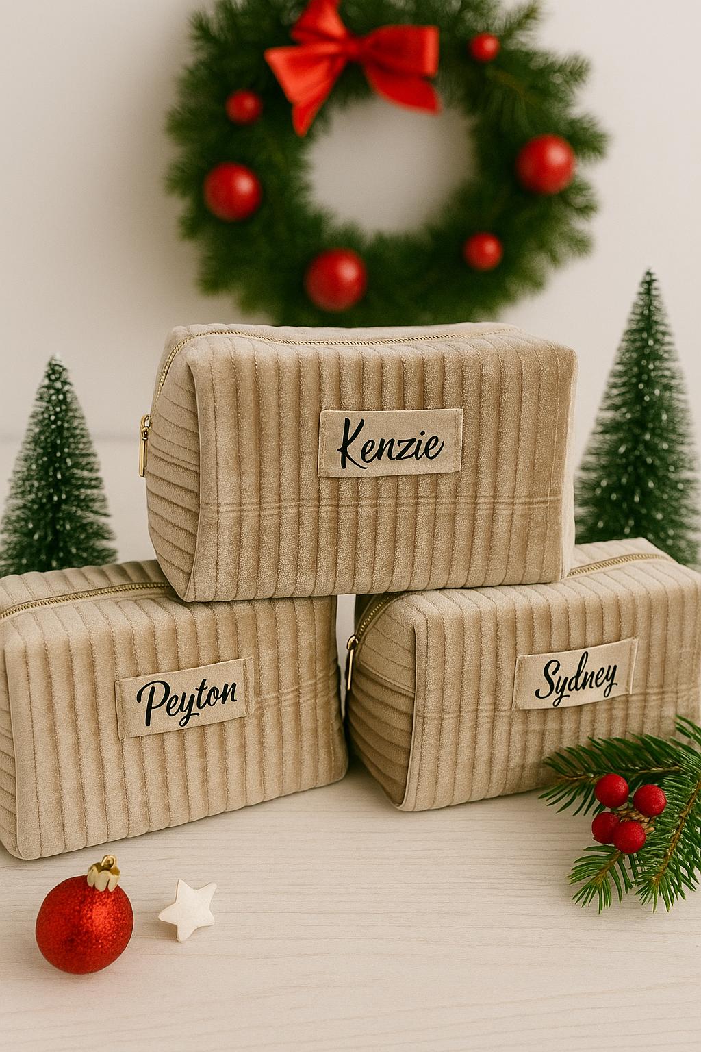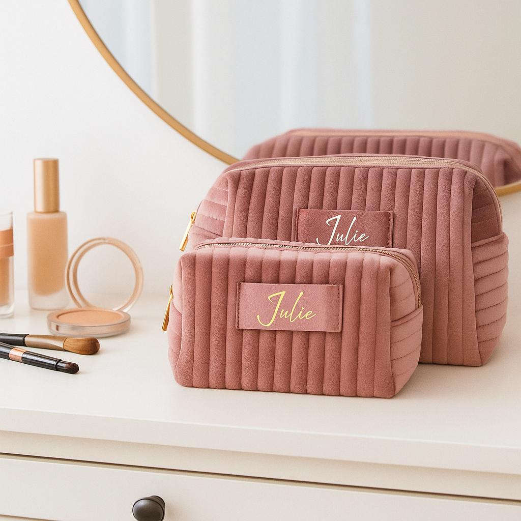 Experience the luxurious feel of velvet with our exquisite makeup and toiletry bags. Each bag is a labor of love, meticulously crafted to exude sophistication and luxury. Not only are they a treat for the eyes, but they're also a cozy haven for your beauty must-haves. These bags make for a thoughtful and tasteful gift that will show your loved ones how much you care. Spread the love with style!
