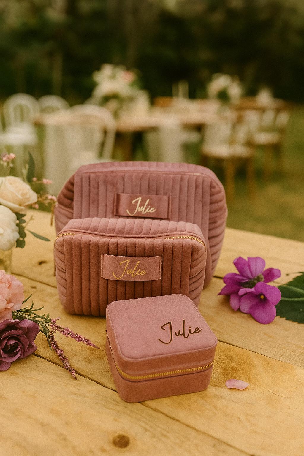 Experience the luxurious feel of velvet with our exquisite makeup and toiletry bags. Each bag is a labor of love, meticulously crafted to exude sophistication and luxury. Not only are they a treat for the eyes, but they're also a cozy haven for your beauty must-haves. These bags make for a thoughtful and tasteful gift that will show your loved ones how much you care. Spread the love with style!