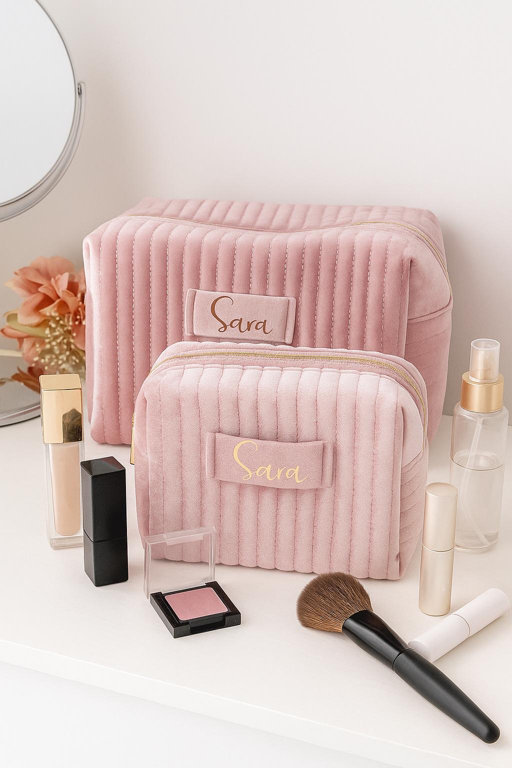 Experience the luxurious feel of velvet with our exquisite makeup and toiletry bags. Each bag is a labor of love, meticulously crafted to exude sophistication and luxury. Not only are they a treat for the eyes, but they're also a cozy haven for your beauty must-haves. These bags make for a thoughtful and tasteful gift that will show your loved ones how much you care. Spread the love with style!