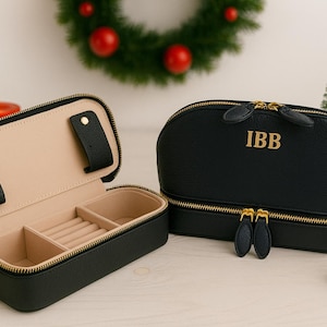 Monogrammed Vegan Leather Travel Jewelry Pouch: Dual Layer Organizer