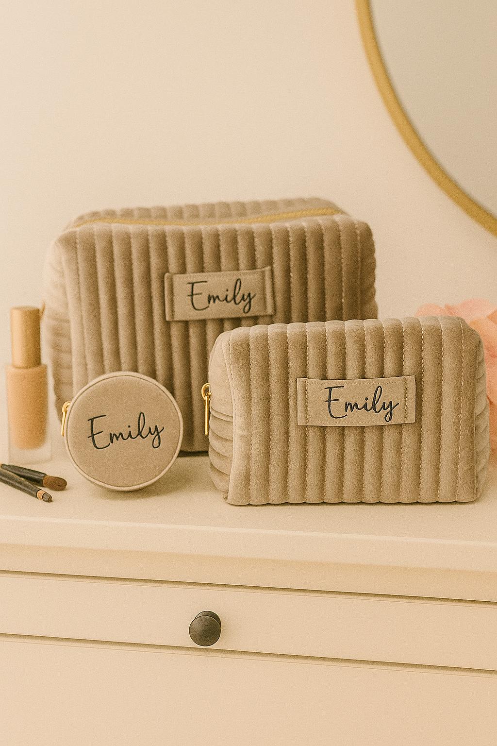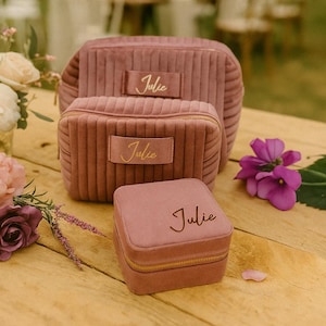 Experience the luxurious feel of velvet with our exquisite makeup and toiletry bags. Each bag is a labor of love, meticulously crafted to exude sophistication and luxury. Not only are they a treat for the eyes, but they're also a cozy haven for your beauty must-haves. These bags make for a thoughtful and tasteful gift that will show your loved ones how much you care. Spread the love with style!