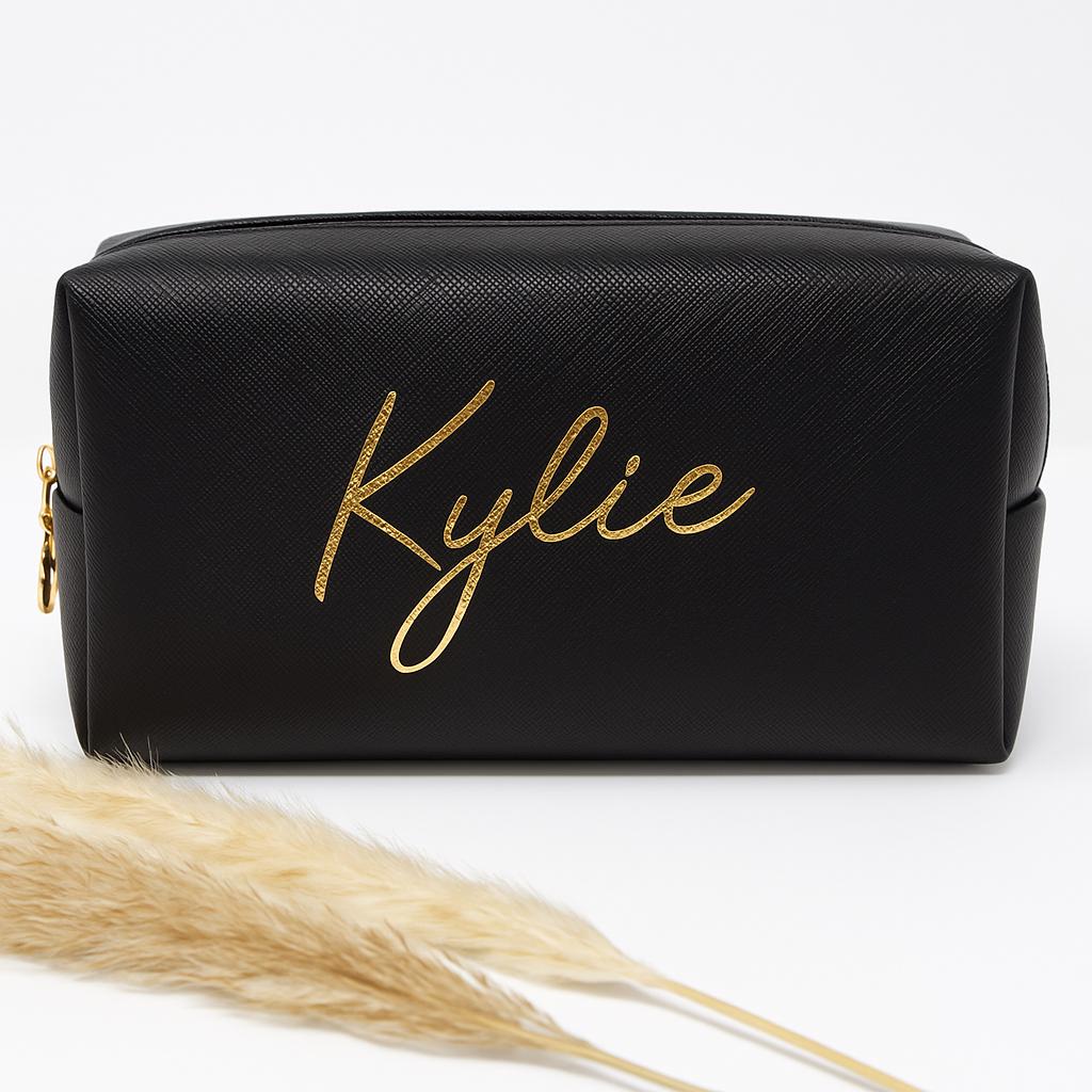 Make their day with a chic, personalized makeup bag they’ll actually use! Our premium vegan-leather cosmetic pouch is customized with a name or initials in your choice of font and color—beautiful for Bridesmaid Gifts, Bridal Showers, Bachelorette Favors, Birthdays, Christmas, Mother’s Day and more.