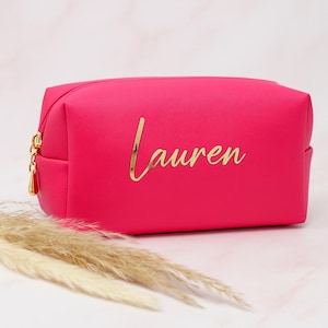Elegant vegan leather cosmetic bag personalized with name or initials—perfect bridesmaid proposal, wedding day touch-up kit, birthday, or Mother’s Day gift.