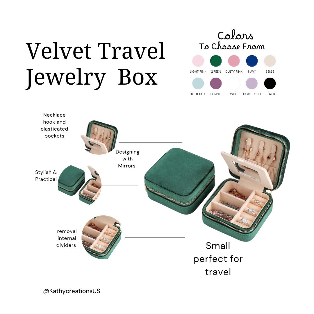 Leather or Velvet Jewelry Box – Compact, elegant, and customizable with a name or initials (up to 10 letters). Perfect for rings, earrings, necklaces, and travel.