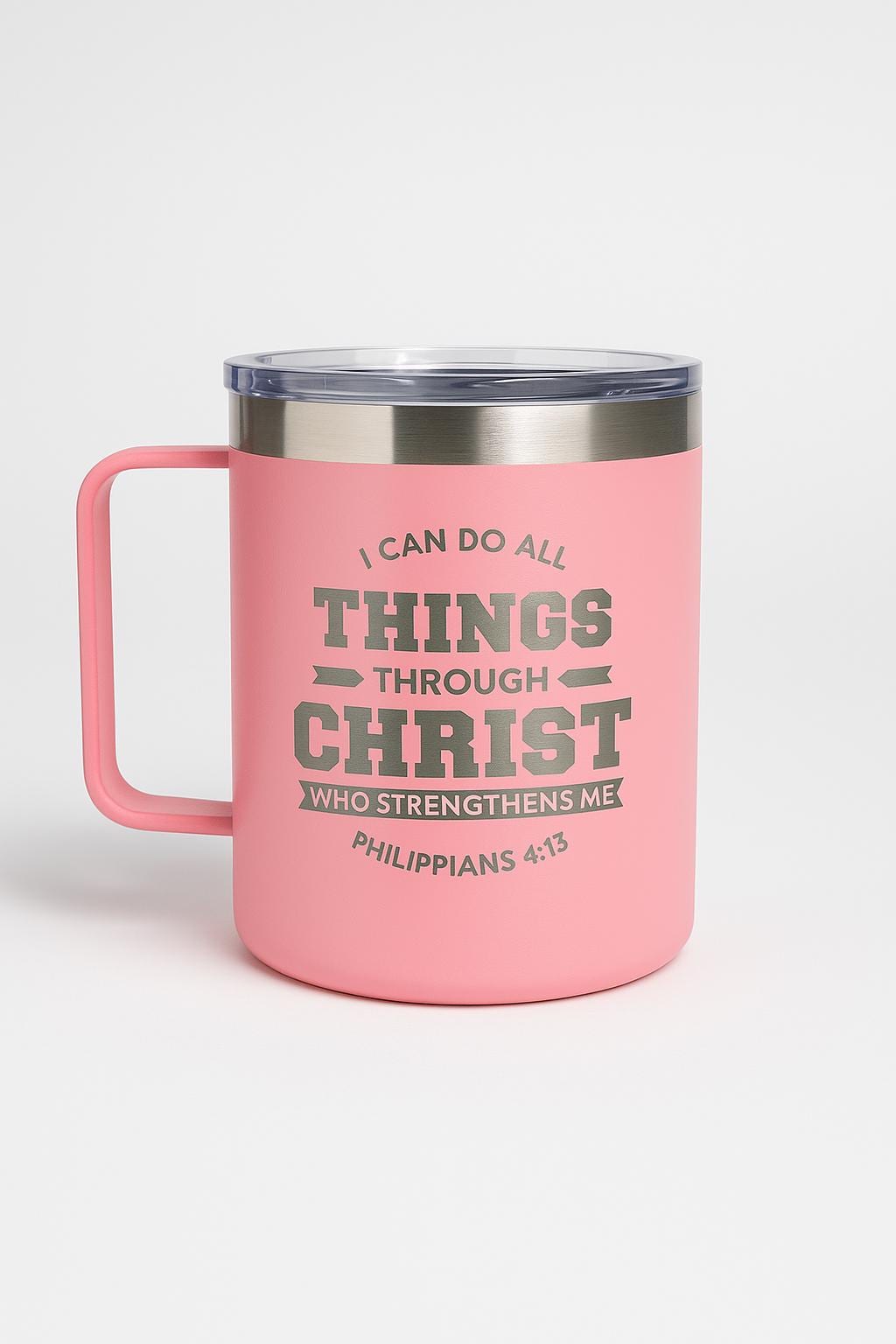 Personalized 12 oz Laser Engraved Travel Coffee Mug with Handle | Custom Stainless-Steel Tumbler | Gift for Coffee Lovers