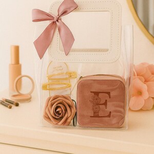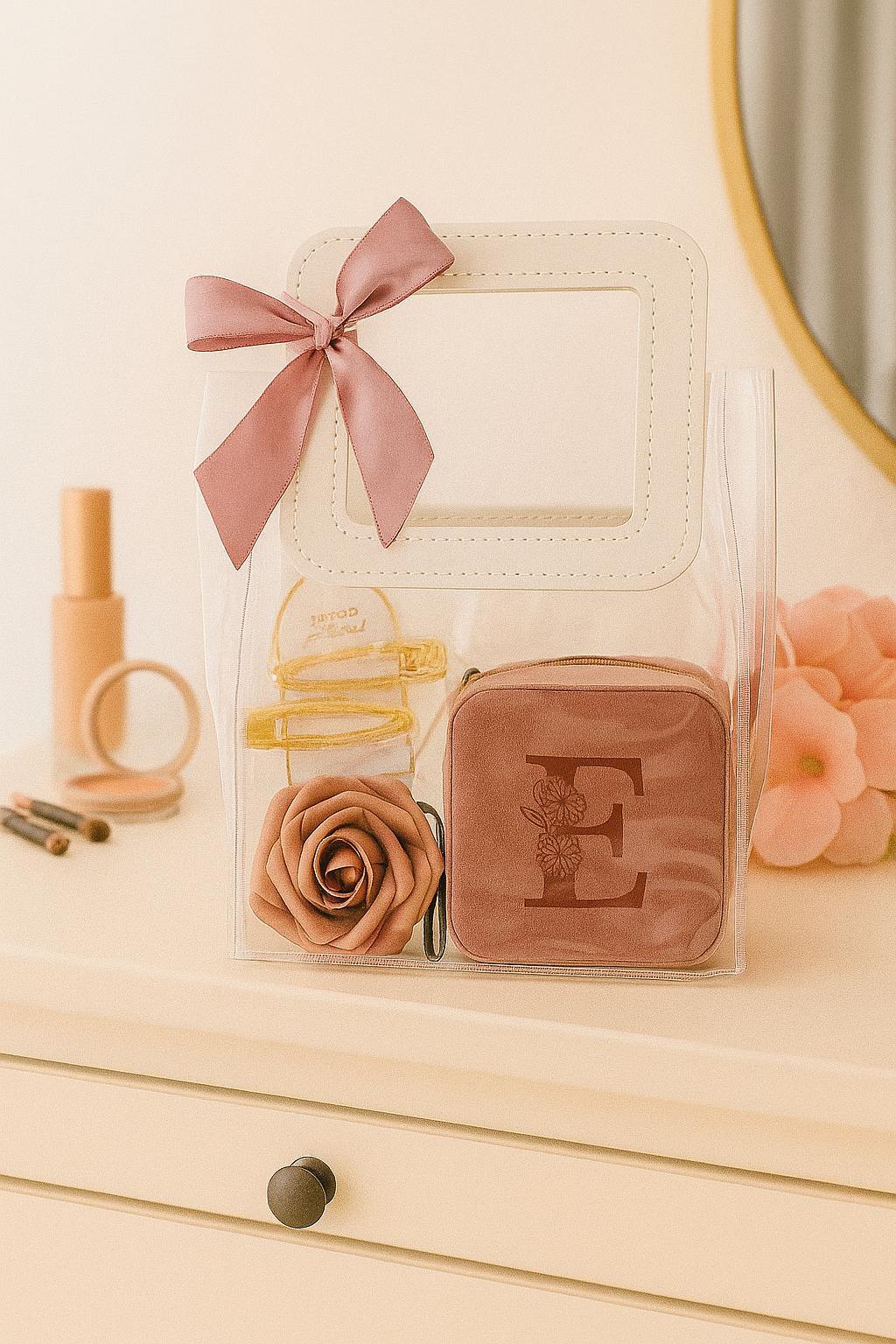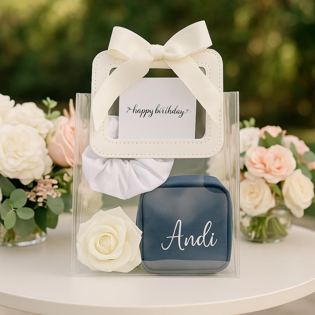 Gift Bag with Ribbon Handle – A stylish and reusable clear bag with gold satin bow, making gifting effortless.